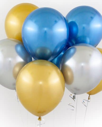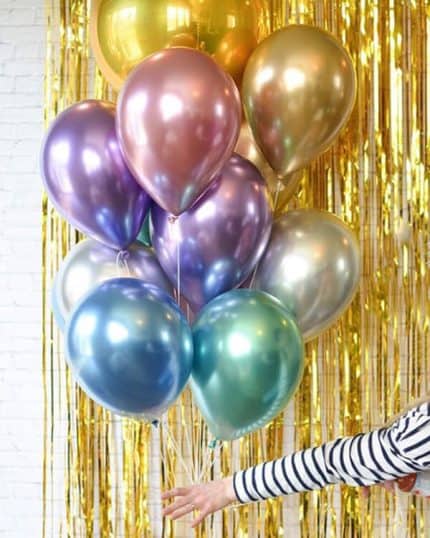 Шары из латекса с хромовым покрытием могут быть разных размеров и форм, что позволяет создавать разнообразные декорации. Они могут быть использованы как отдельный элемент декора, так и в сочетании с другими украшениями, например с цветами, тканями, лентами или другими шарами.